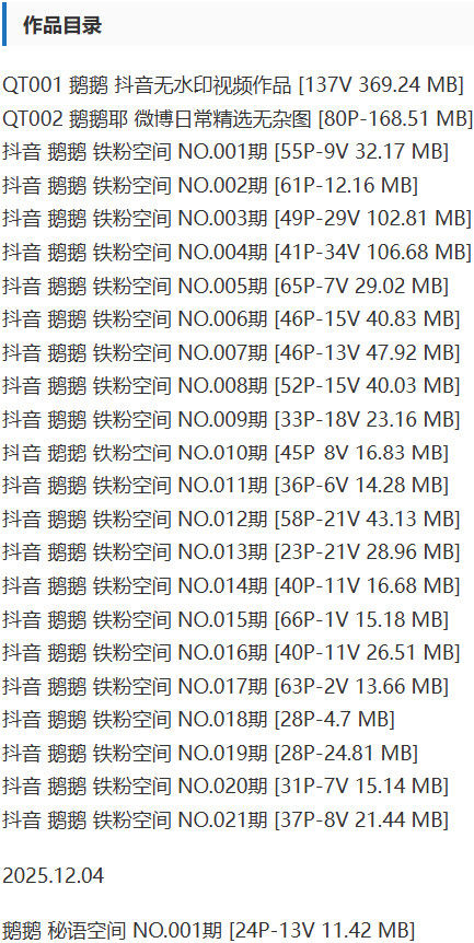 鹅鹅(鹅鹅耶) – 铁粉空间写真&视频合集【持续更新中】 2025-12-11 热门网红 8 0 资源下载此资源下载价格为4积分,VIP免费,请先登录 资源下载下载价格4 积分VIP免费请先登录 文章来源出自[ 爱主播], 转载请保留原文链接:https://www.bjlove.net/95189.html 0 0